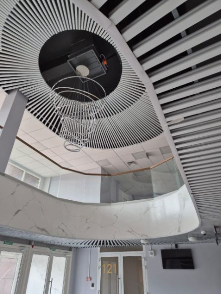 Металлические реечные потолки не боятся влажности, перепадов температуры, УФ-излучения и времени. Их не нужно обслуживать, перекрашивать или демонтировать — они сохраняют форму и цвет даже в сложных условиях. Именно поэтому их выбирают для общественных зданий с высокими эксплуатационными требованиями.